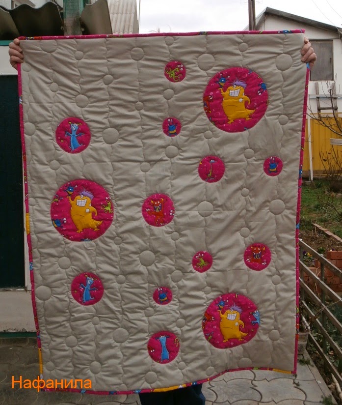 Простегивала еще монстров по контуру. На фотографиях не заметно, но в жизни они получились объемными.